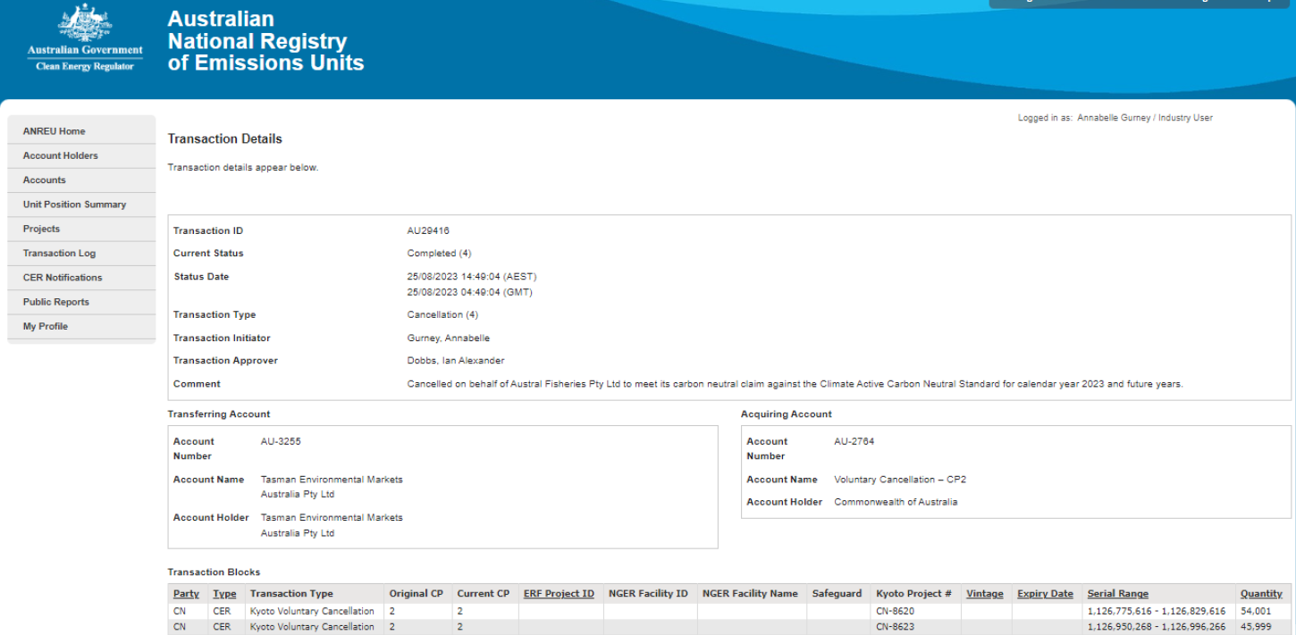 Austral Fisheries - Offsets Record 1 - 2023