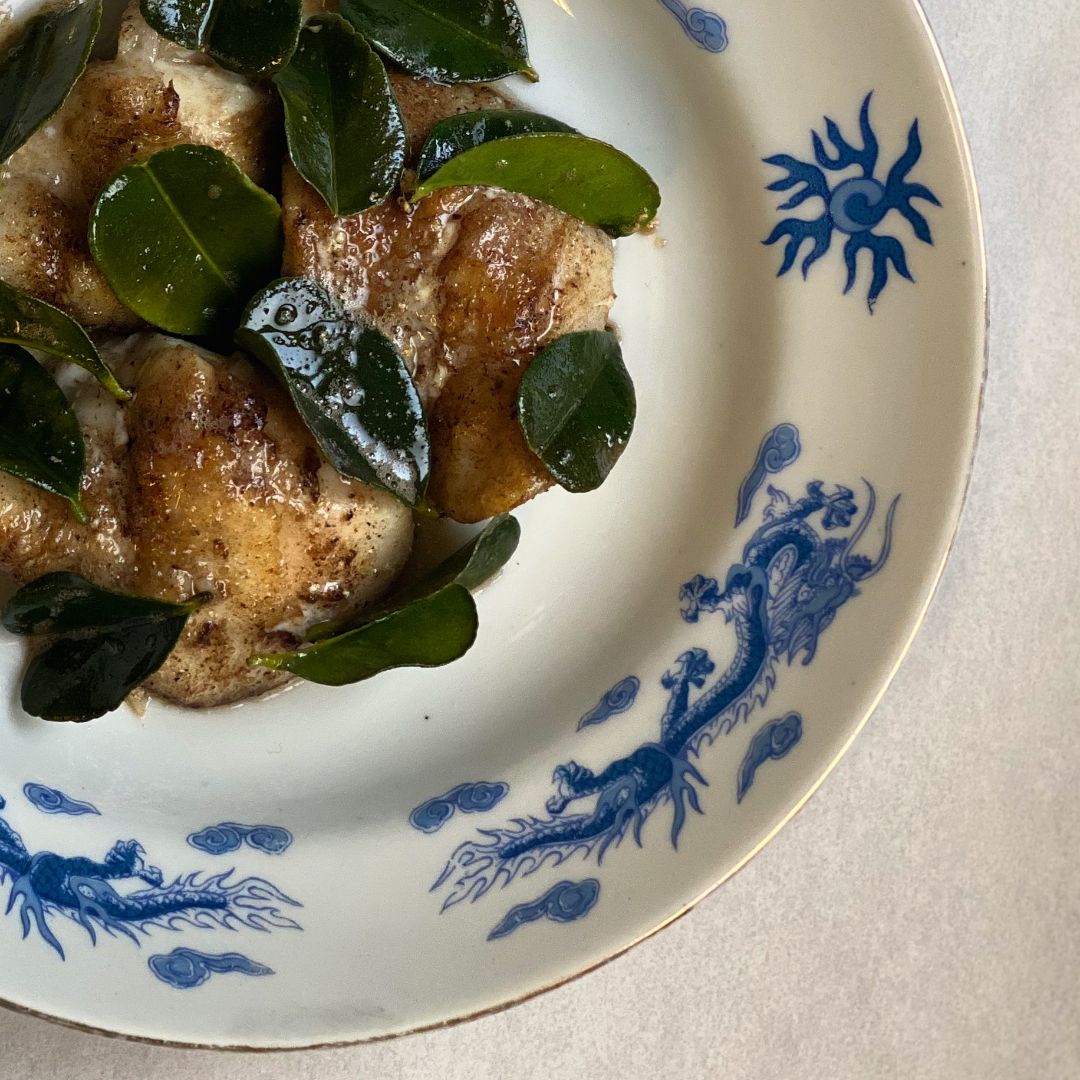 Generously spoon over the lime leaf infused brown butter.